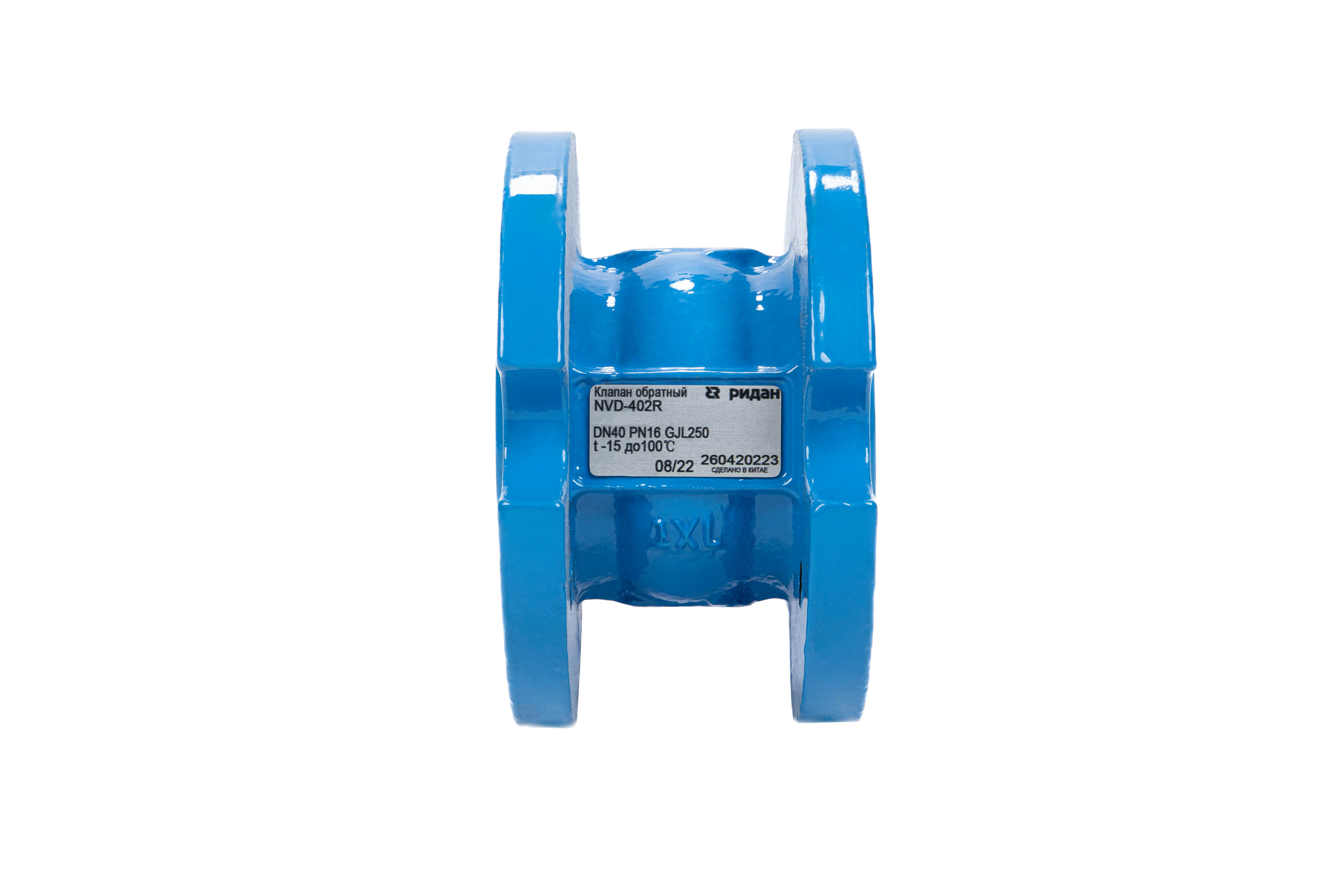 Ридан NVD-402R 082X8474R — Клапан обратный фланцевый пружинный с аксиальным затвором, PN16, DN100, чугун GJL250